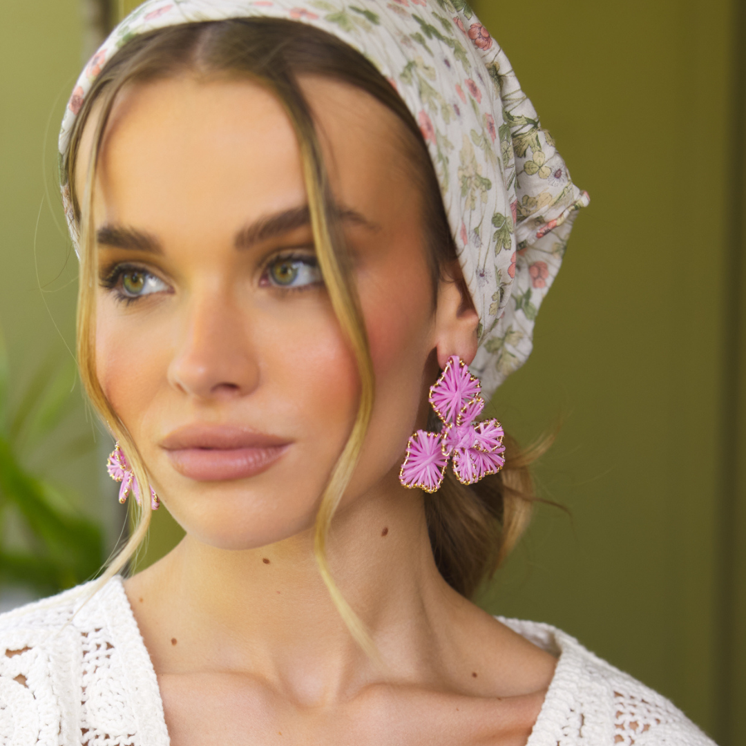 Bold. Bright. Feather-light. The Dig Deep Earrings are handmade raffia flower statement earrings available in 11 stunning colors. Designed to elevate your everyday look, these lightweight beauties add instant style—without weighing you down.