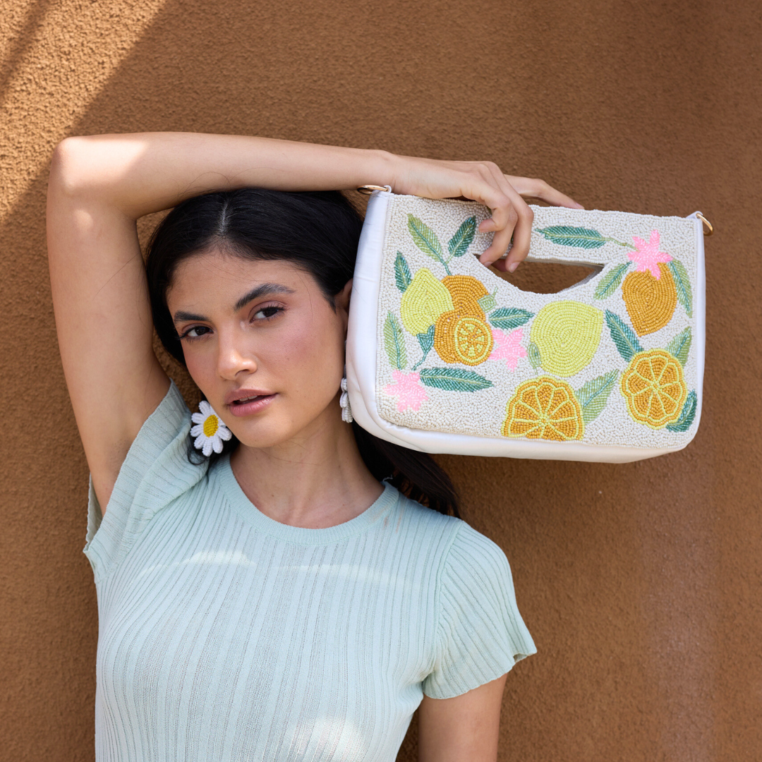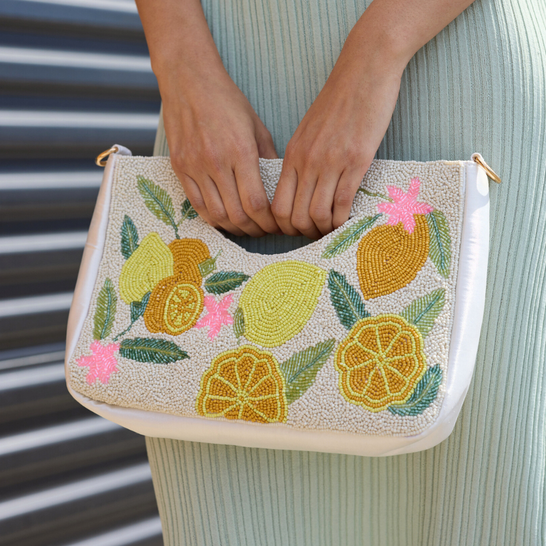 Looking to add some zest to your life? Look no further than the Fruitful Life Lemon Bag! This quirky shoulder bag features playful lemon beads, adding a pop of color and fun to any outfit. Perfect for those who don't take themselves too seriously and want to stand out in the crowd.