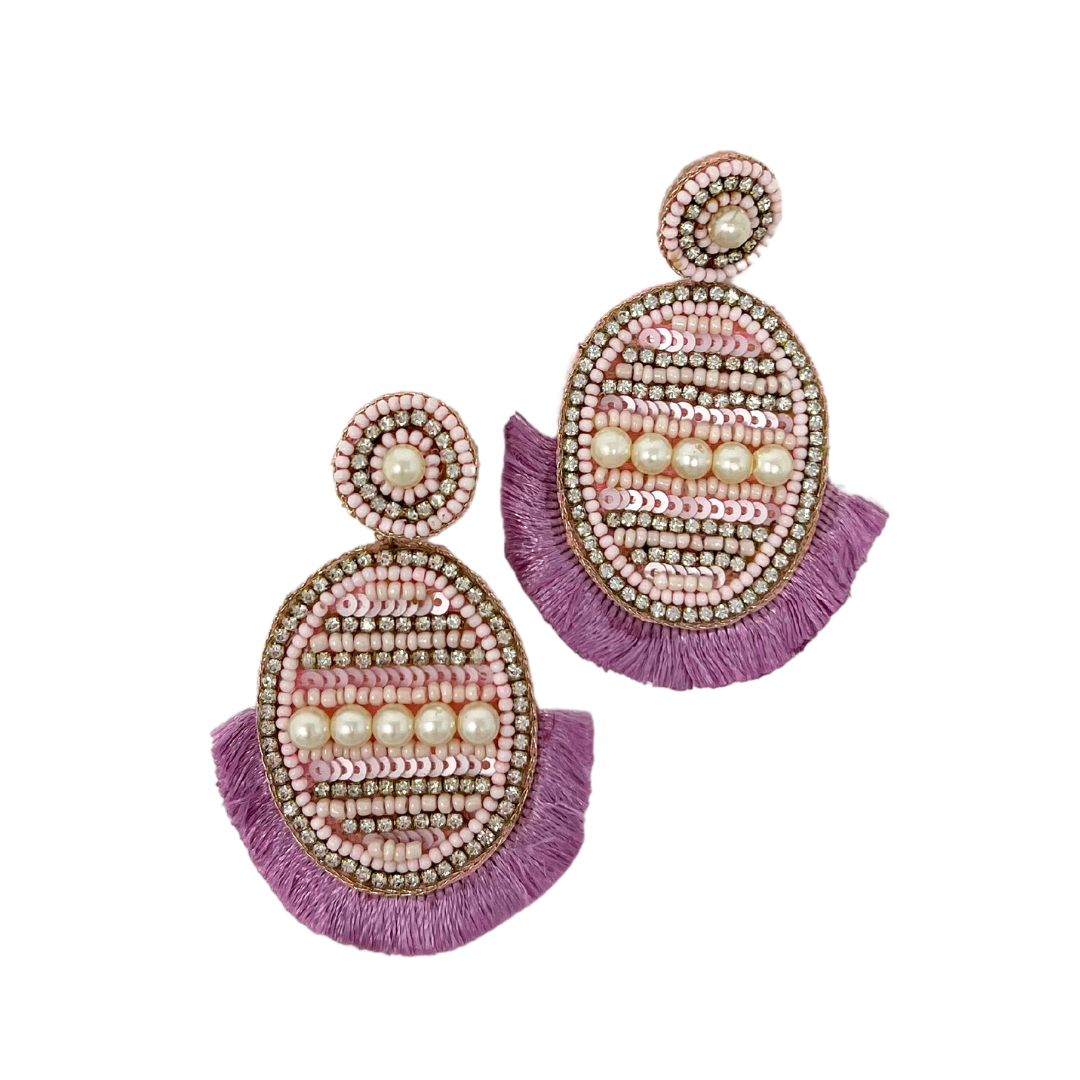 Our Joyful Feeling Beaded Earrings will add a touch of sparkle to your style. Crafted with a lilac beads, pearls & rhinestones and hand-beaded design, these earrings are lightweight yet durable. A post back ensures a secure fit without hindering movement. Add a touch of class to your look with Joyful Feeling Beaded Earring.