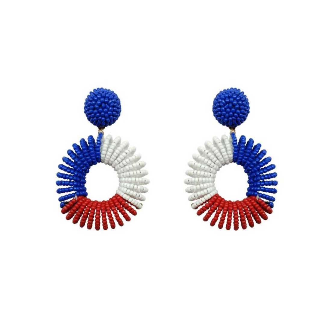 Celebrate Independence Day with these playful Born Free Seed Bead Drop Earrings! These earrings are perfect for adding a touch of patriotic fun to any outfit. Show off your quirky style with these unique 4th of July earrings. Make a statement and embrace the holiday with these fun accessories!