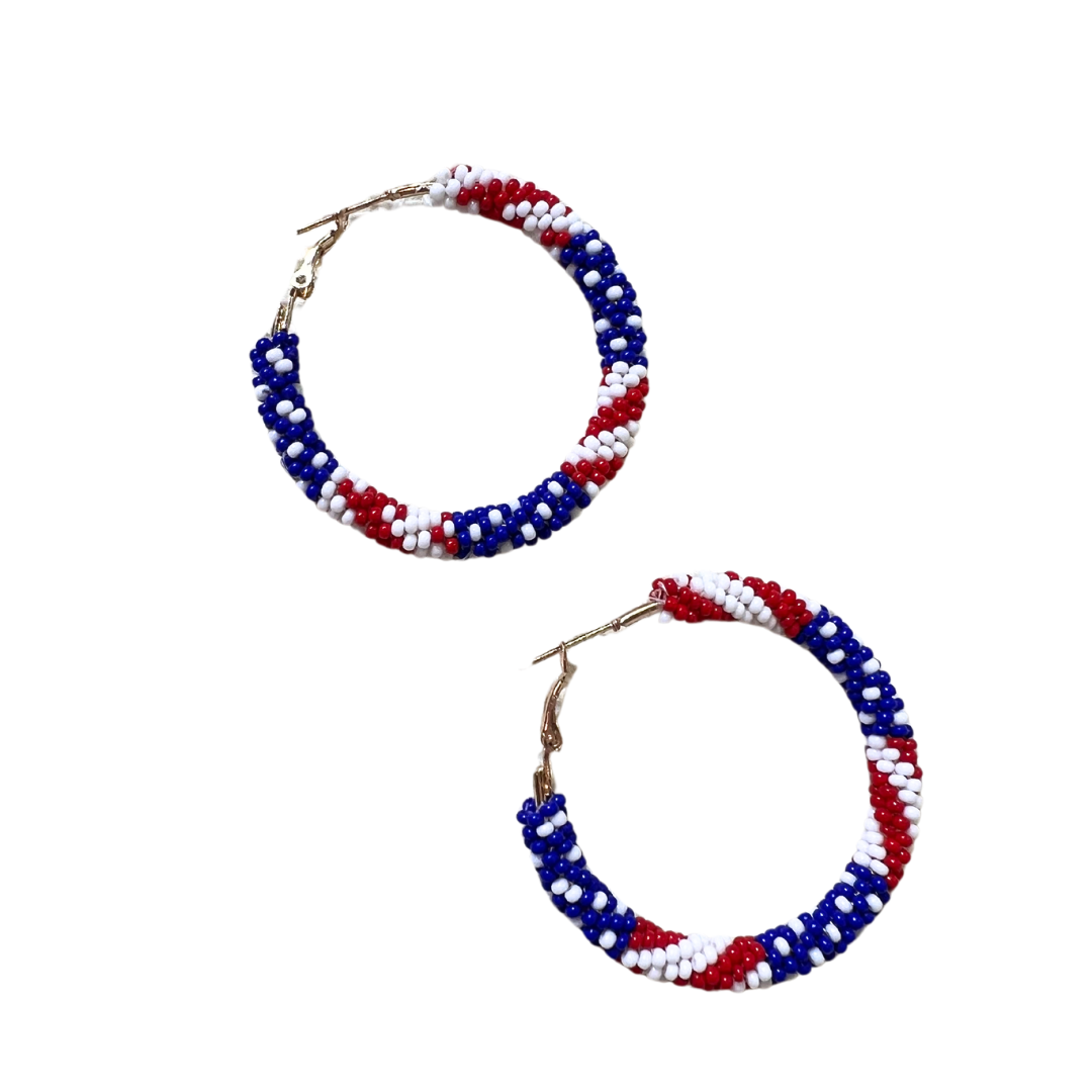 These earrings will add a patriotic touch to any outfit with their red, white, and blue beaded hoops. Perfect for celebrating Independence Day and July 4th, they'll be the envy of all your friends. Show off your freedom with these fun and festive earrings.