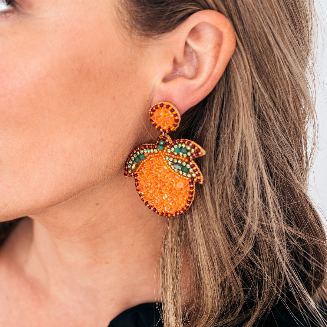 Bold. Bright. Bursting with joy. Our Squeeze the Day earrings are the ultimate statement accessory for those who love to lead with confidence and color. Featuring a charming whole orange design, these handmade earrings are a cheerful reminder to show up fully, shine brightly, and live colorfully.