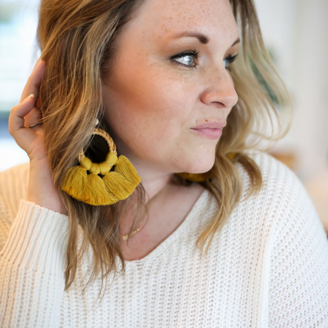 Our Daringly Different Statement Earrings are a fan favorite! Not only will they remind you to be daringly different when you put them on but they will be a compliment magnet. Trust us... so many Lobe Love ladies say they get stopped the most when these are dangling from their ears. Join in on the compliments with a blush or mustard yellow pair!